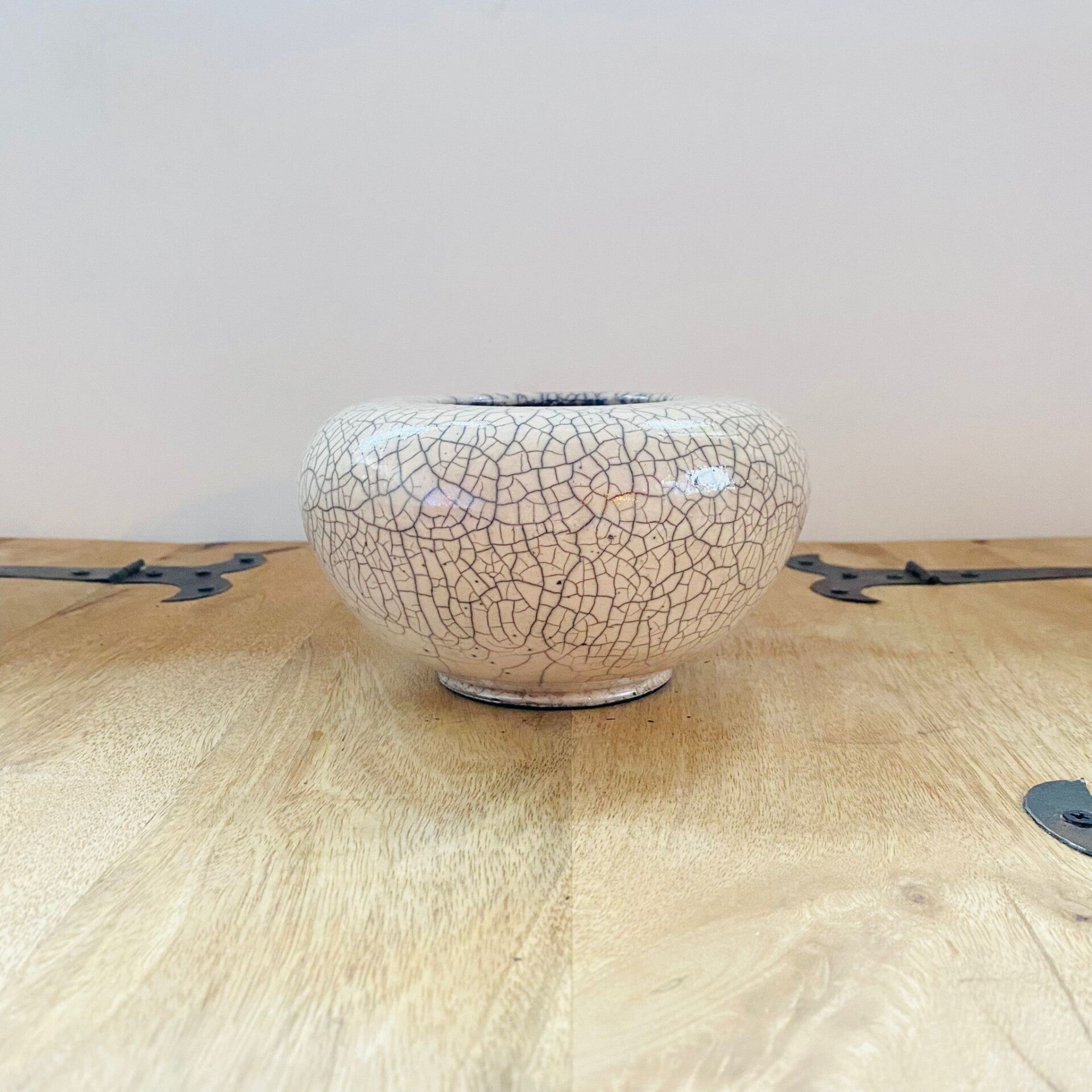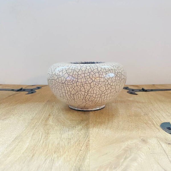 Dankzij de raku techniek is dit werkelijk een uniek stuk. De sluitende vorm geeft extra ruimte waarom de kraakjes goed zichtbaar zijn. Dit elegante stuk is ideaal als decoratie in bijna elke ruimte.
